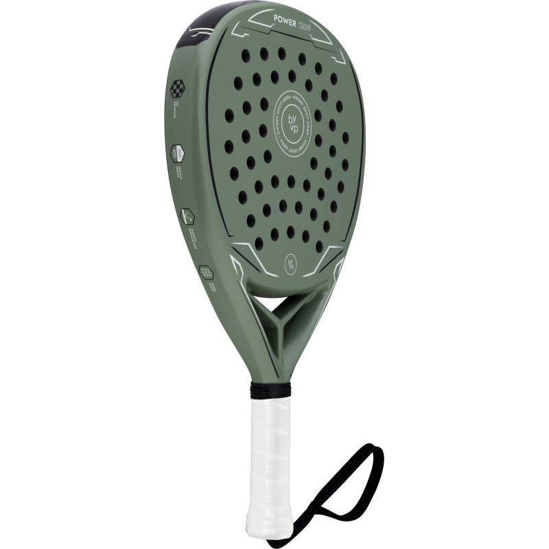 Introducing the By-VP Padel Racket Diamond Power 1200, a diamond-shaped padel racket that combines a sleek green design with striking white accents. Crafted with a carbon frame and a fibreglass core, this racket strikes the ideal balance between strength and flexibility.